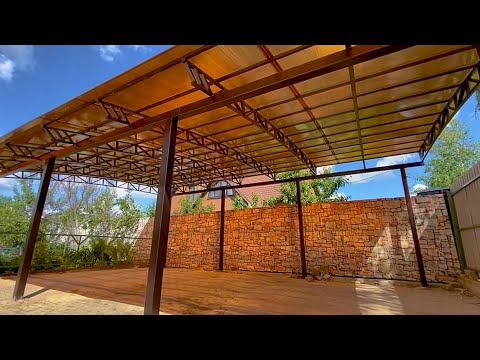 Заменили старый навес для автомобилей из профнастила на новый из поликарбоната