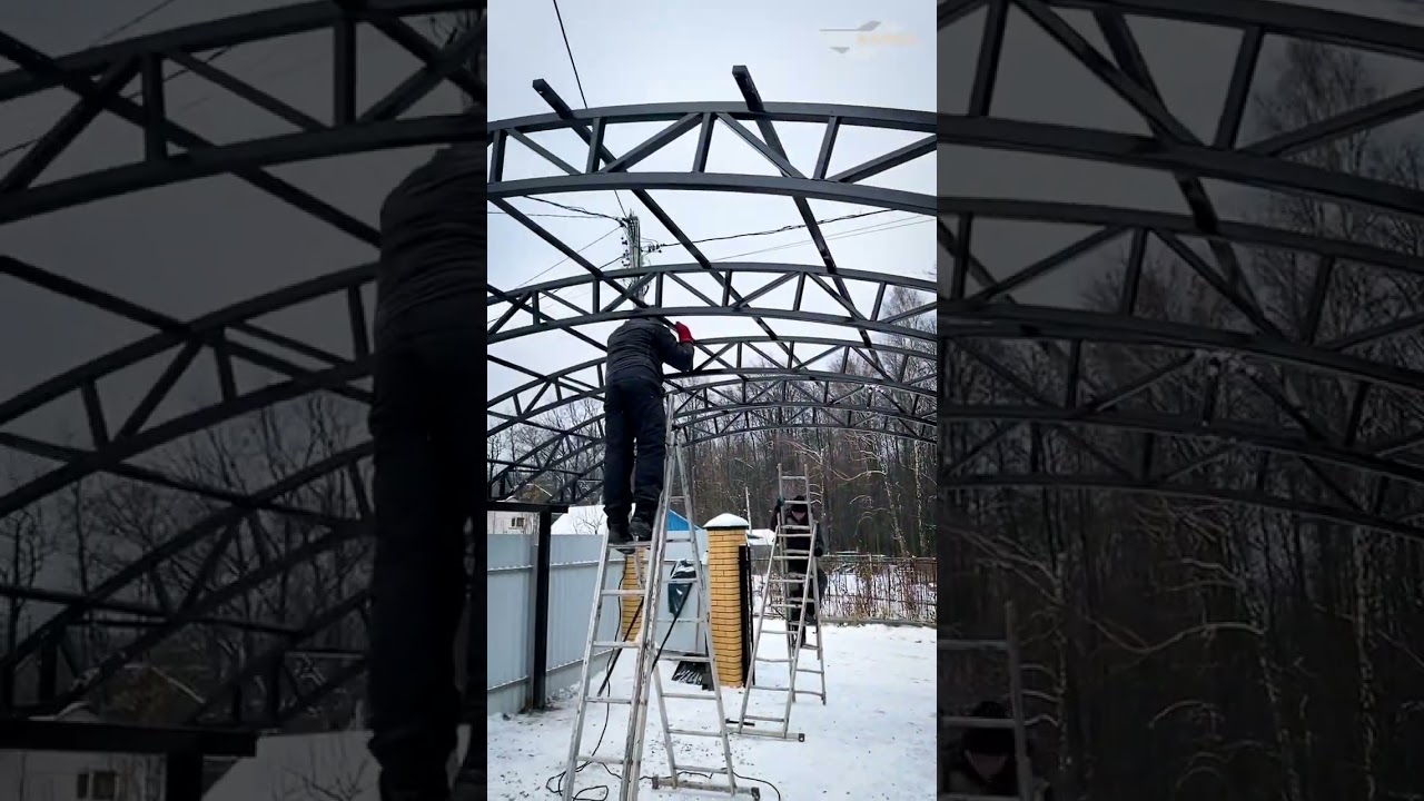 Навесы из поликарбоната Спецкаркас | Процесс сборки стропильных ферм